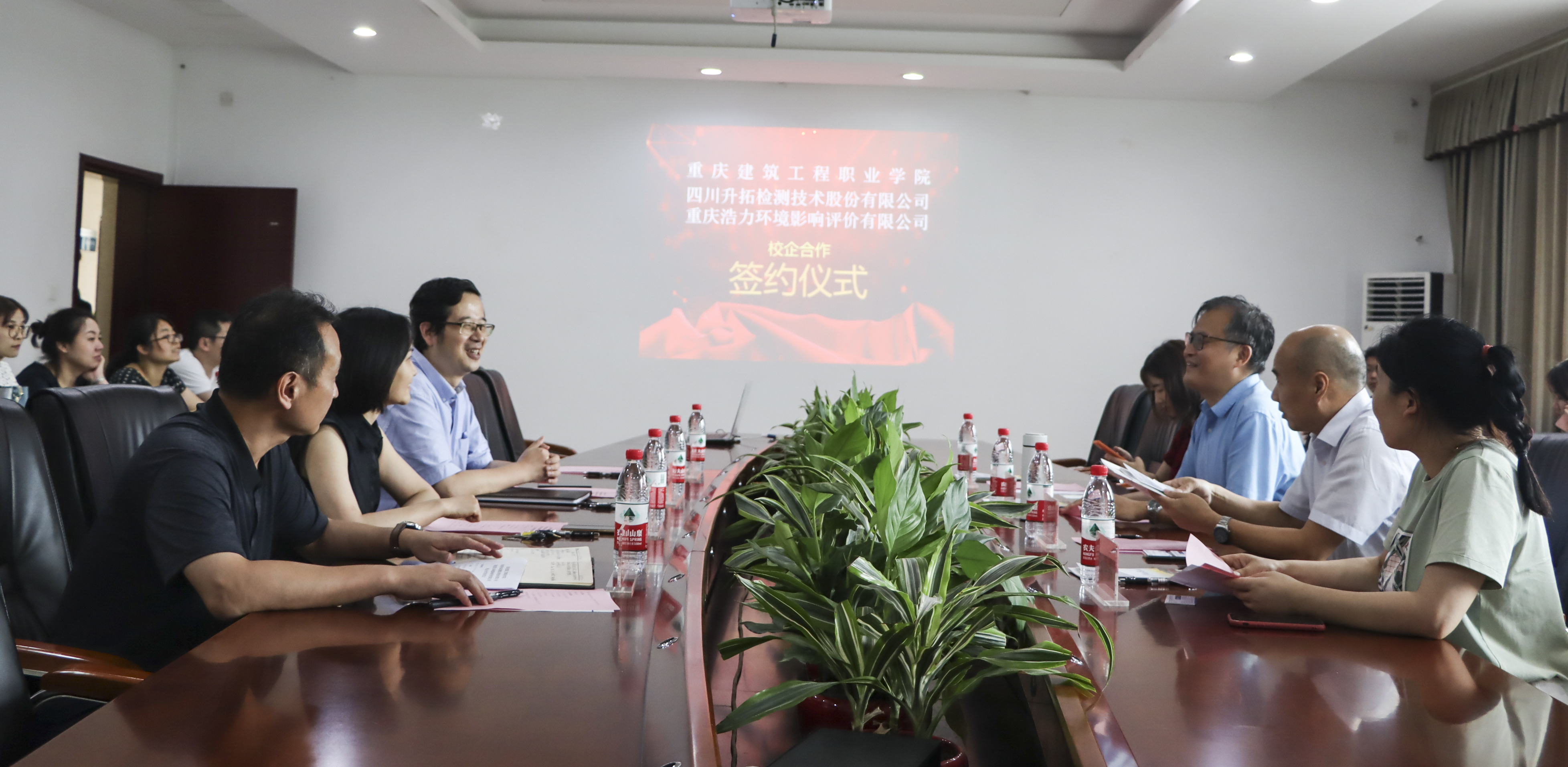 7月6日下午,我校与四川升拓检测技术股份有限公司、重庆浩力环境影响评价有限公司在厚德楼201会议室隆重举行校企合作签约仪式。球盟会qmh网页版登录副校长刘幼昕、四川升拓检测技术股份有限公司董事长吴佳晔、重庆浩力环境影响评价有限公司董事长康林出席仪式。招生就业处处长杨超、交通与市政工程学院院长黄春蕾、院党总支书记杨晓东,两家企业相关负责人以及交通与市政工程学院专业教师共计20余人参加会议。