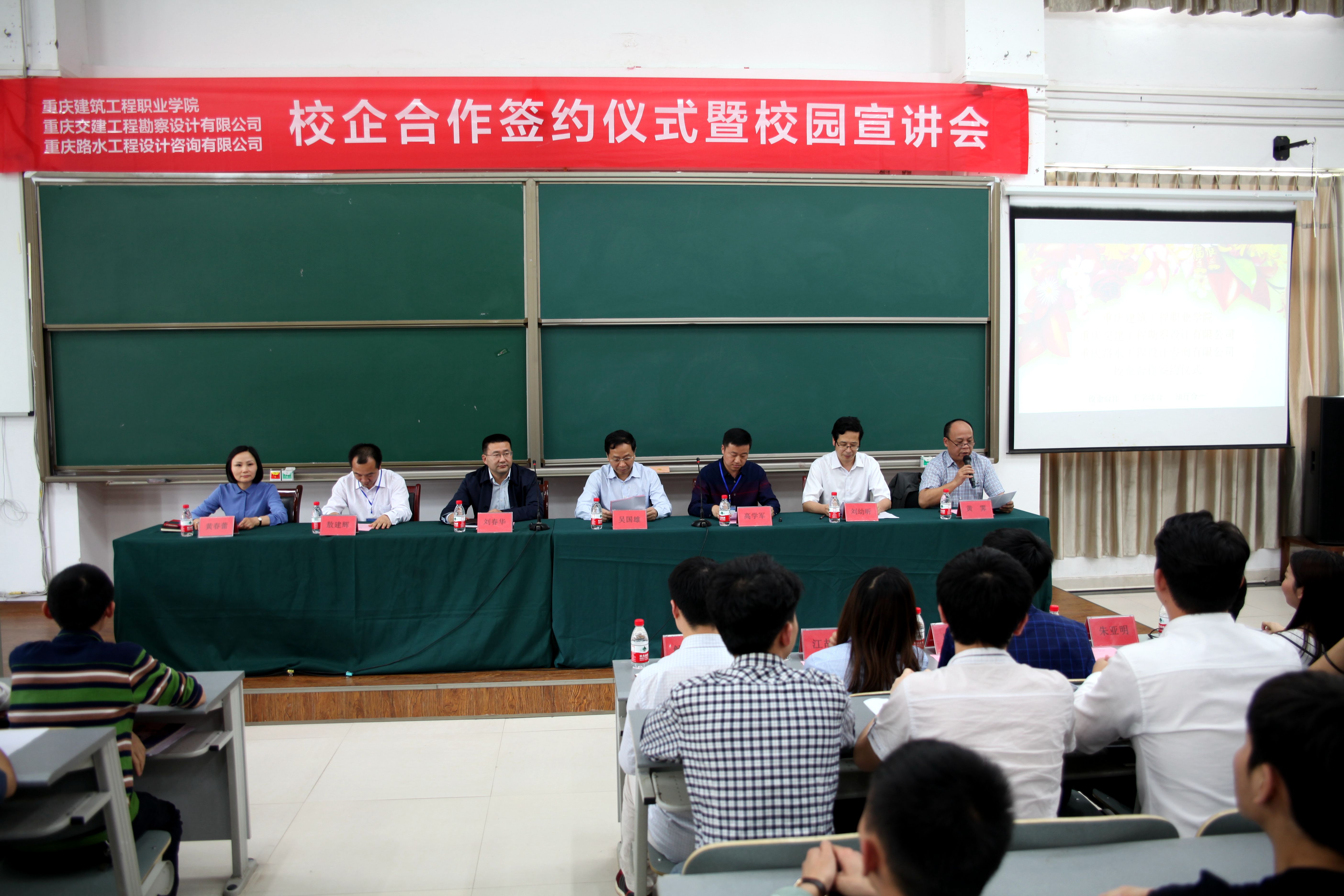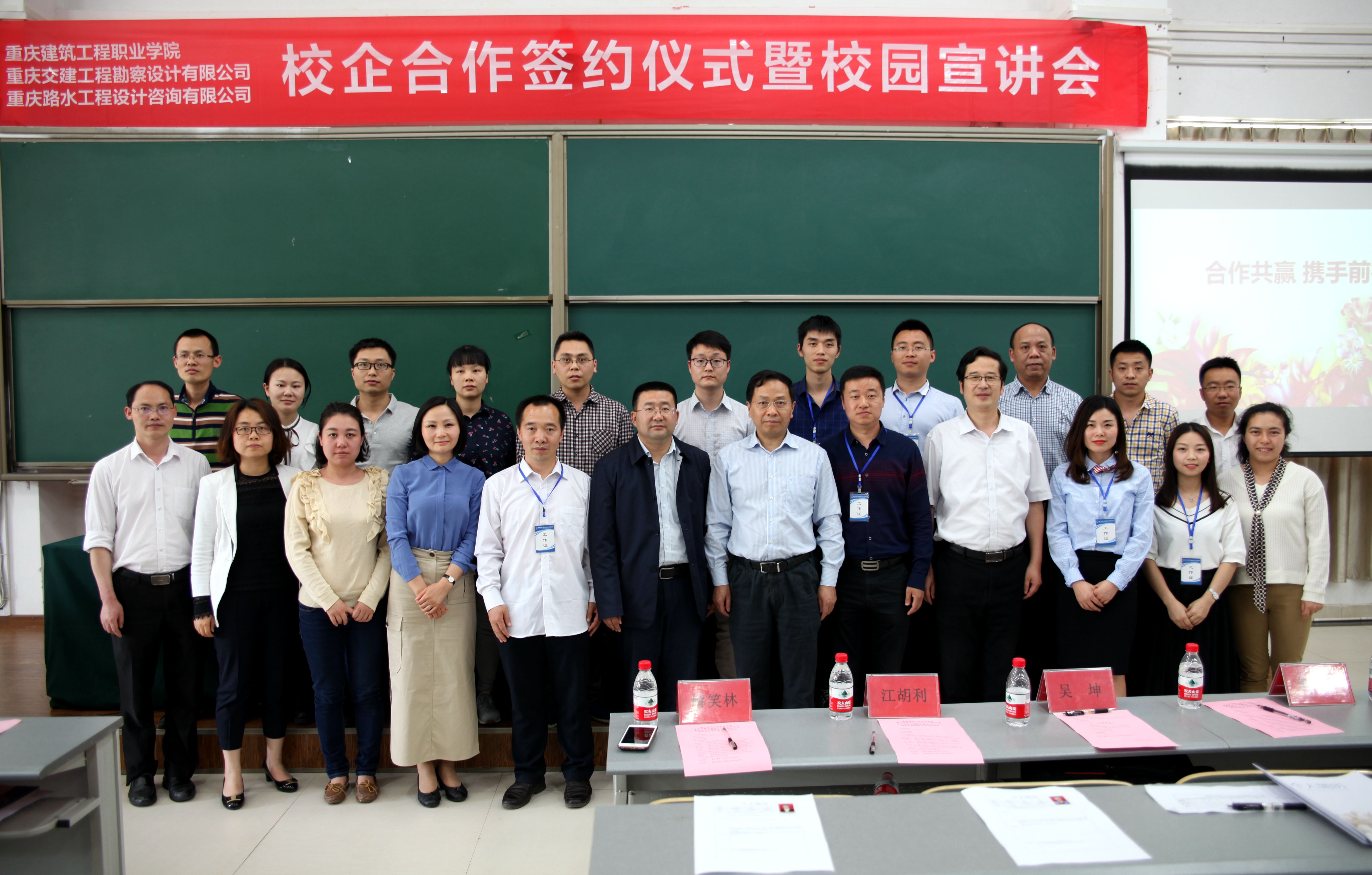 4月19日下午,我院与重庆交建工程勘察设计有限公司、重庆路水工程设计咨询有限公司校企合作签约仪式暨企业校园宣讲会在笃学楼4-209室隆重举行。