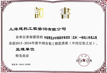 公司多次被评为全国先进建设监理单位,上海市立功竞赛优秀公司、金杯公司;并被评为建设部抗震救灾先进集体、全国建设监理行业抗震救灾先进企业、全国建设工程咨询监理服务客户满意十佳单位,另还获其他各类集体荣誉几十项。