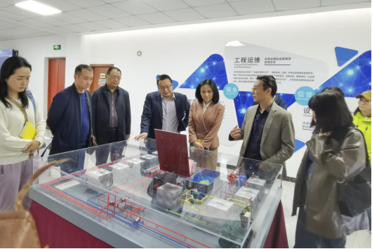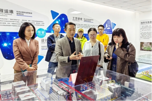 在华捷地热公司高层团队引导下,学院一行参观了公司成果展厅、智能化控制区、地热和康养设备展示区、工艺与设备实验室等,了解了公司水冷热联供工艺系统、温泉浓缩设备、智能云平台以及温泉恒温雾化器等创新研发成果,双方就下一步合作事宜进行座谈交流。
