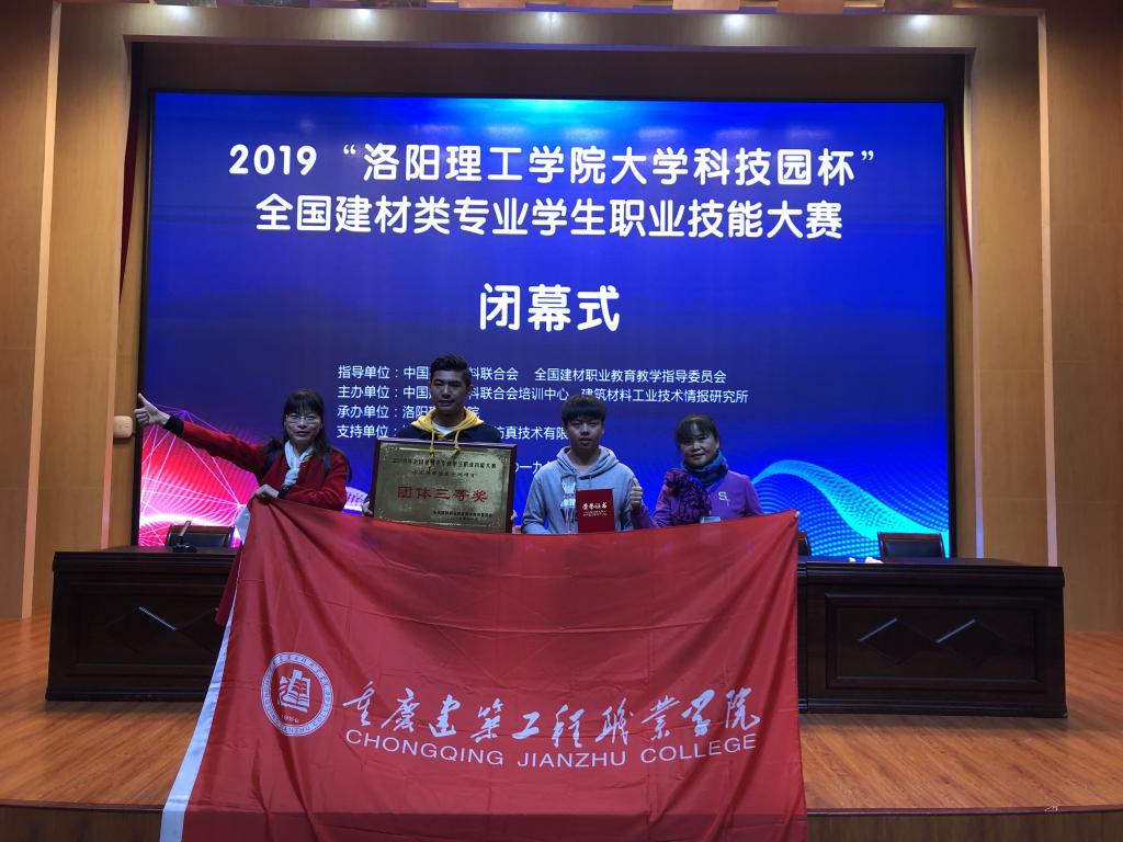 2019年11月9日到11月13日,由全国建材职业教育教学指导委员会主办,洛阳理工学院承办的“2019‘洛阳理工学院大学科技园杯’全国职业院校建材类专业学生职业技能大赛”在洛阳胜利举行,全国33所学校,共203名选手参赛。我院高17级、18级土木工程检测技术专业学生李家豪、胡靖,在我院杨旗、梅志红、伍朝阳、阳江英老师指导下参加了本次大赛的水泥物理性能检测赛项和创新创意作品赛项。