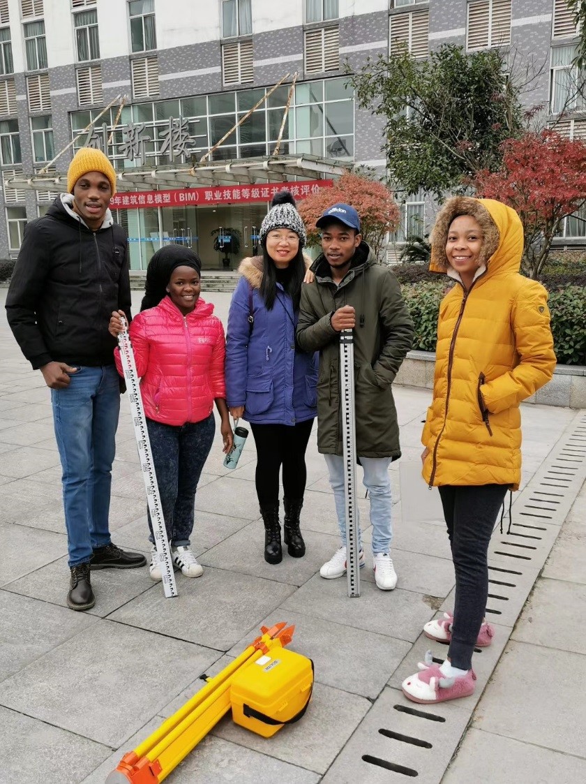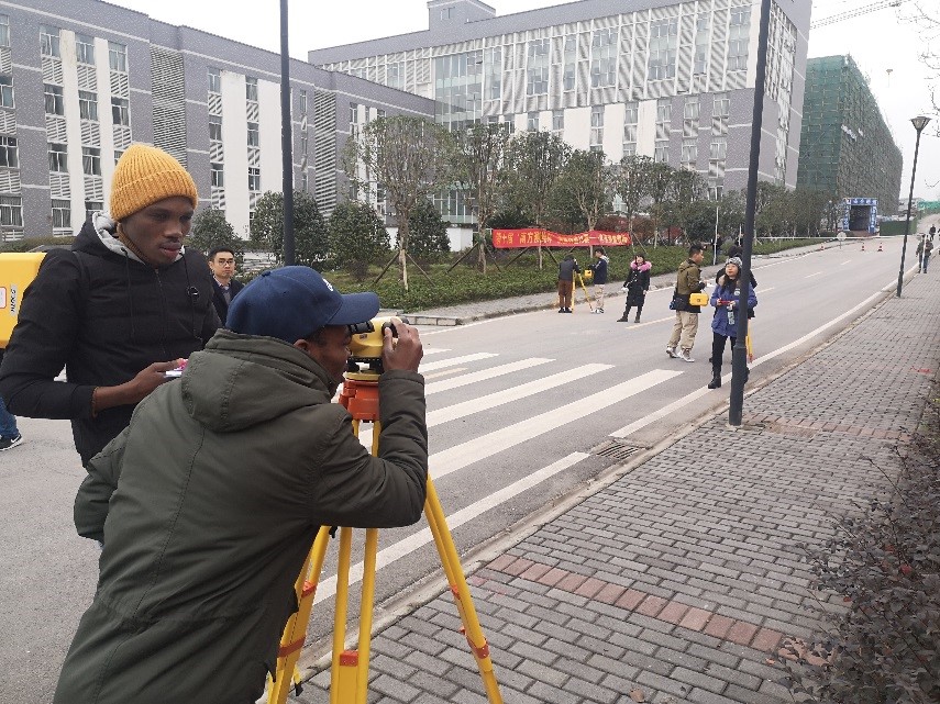 通过激烈的角逐,高18级检测2班的杨陈青、高鹏、尚文博、涂腾飞和高18级建管4班的刘燚、代宇、游江波、卿婷八名同学获得水准测量项目的一等奖;高19级交工1班张卢健、19级建管1班王海龙、19级建管1班周飞杨、18级建工3班李锐四名同学获得角度测量项目的一等奖。值得一提的是南非留学生SIWELA THEMBINKOSI ELIAS、MHLANGA MDUDUZI MESHACK 、SITHOLE DUMISANI、MAFOHLA THEKIO JOAHNNES团队获得水准测量团体赛三等奖,MAFOHLA THEKIOJOAHNNES、SITHOLE DUMISANI、SIWELA THEMBINKOSL ELIAS获得角度测量个人三等奖。