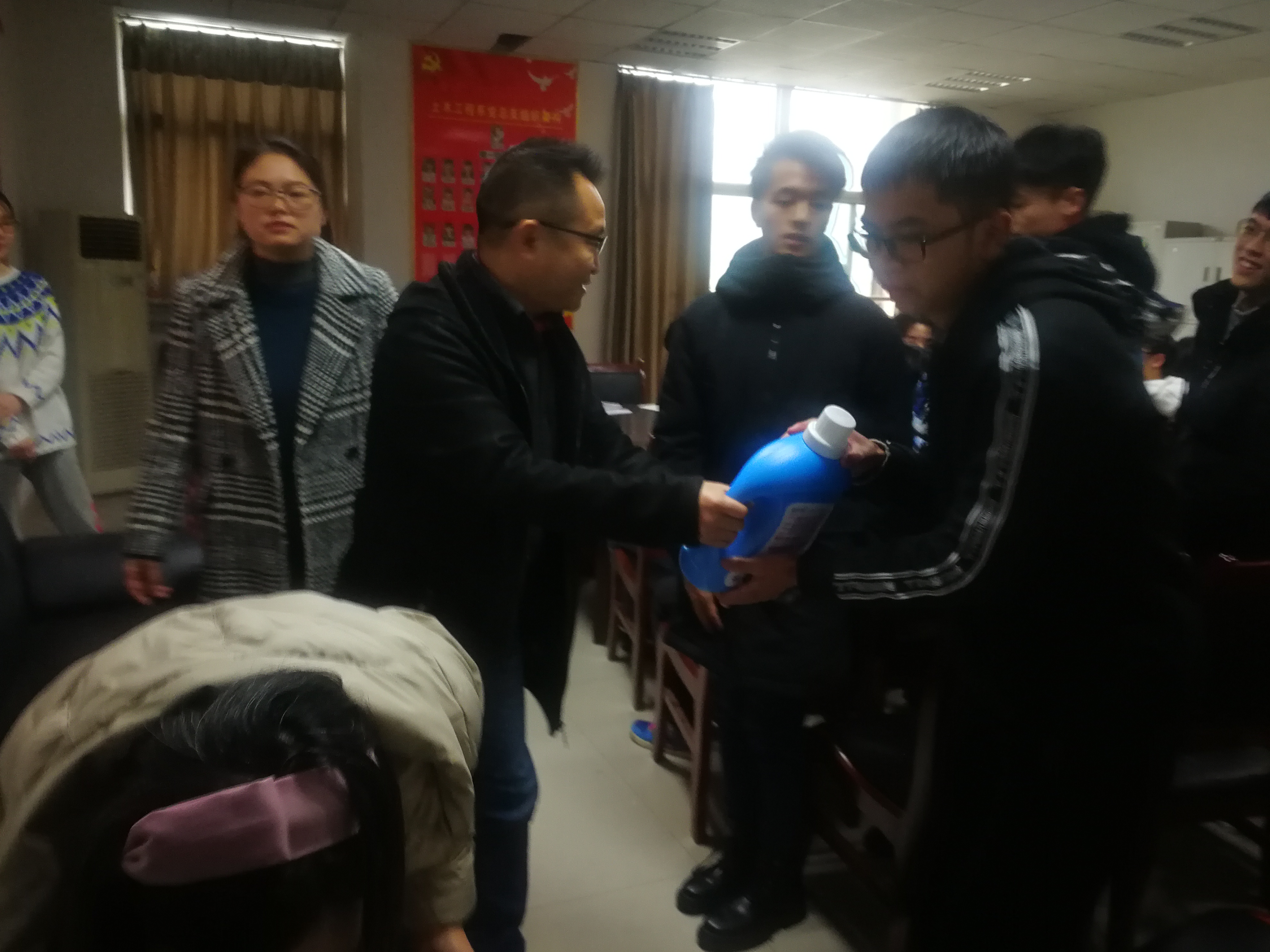 座谈会后,老师们为参加座谈会的学生发放了慰问品,并送上了新年的慰问和祝福,希望同学们能不畏困难、不惧风雨,自强进取,积极向上,怀抱一颗感恩的心,感恩国家,回报社会,把爱传递下去。