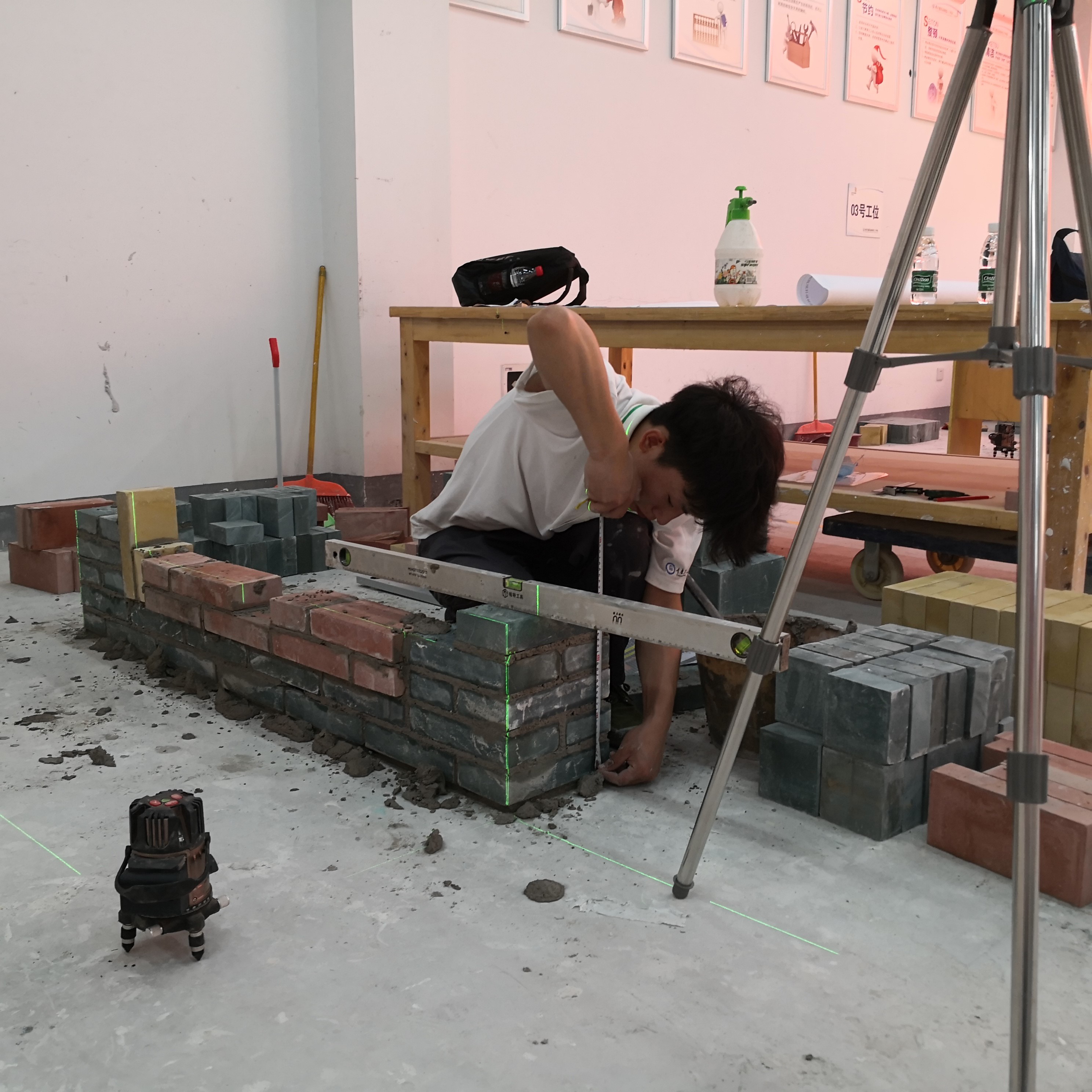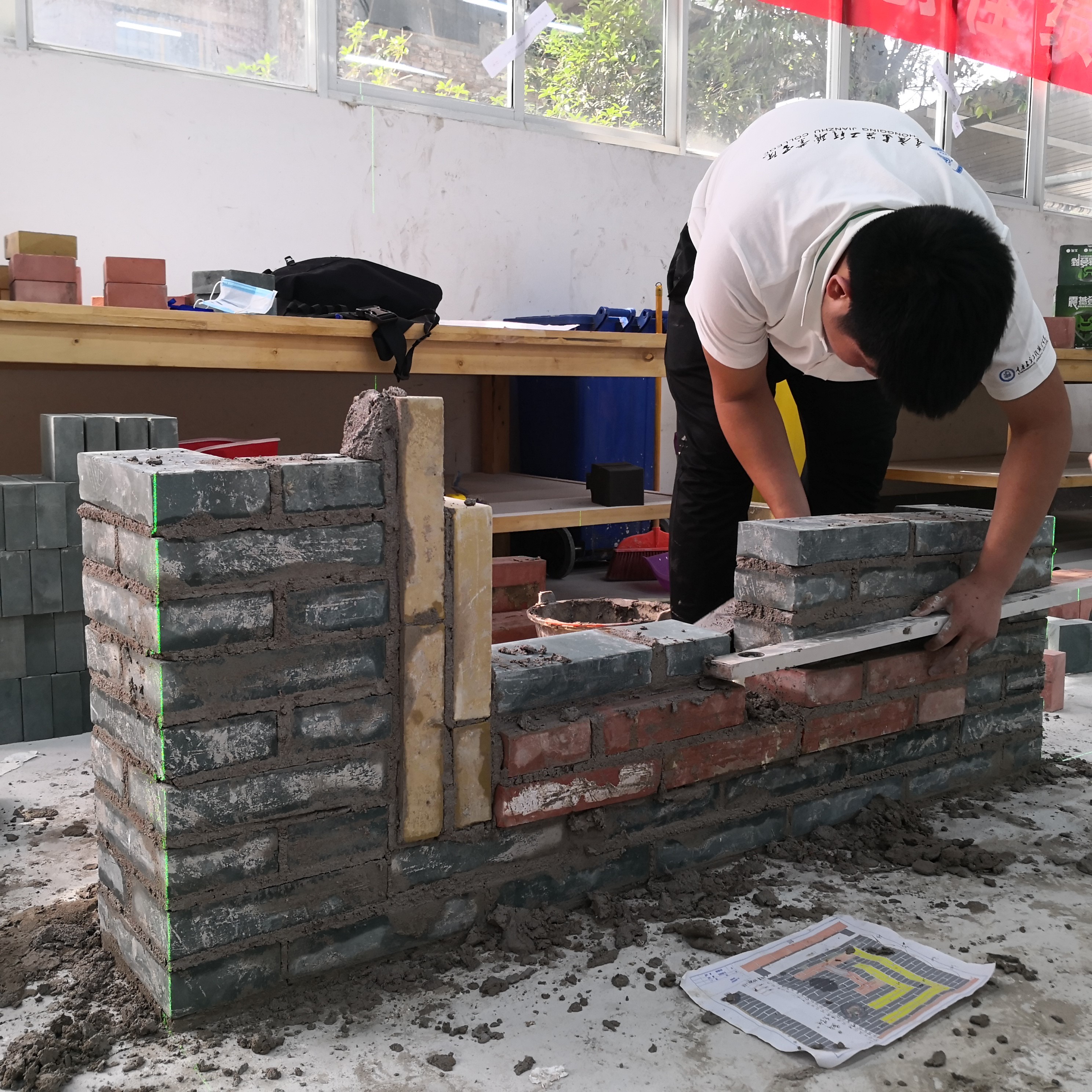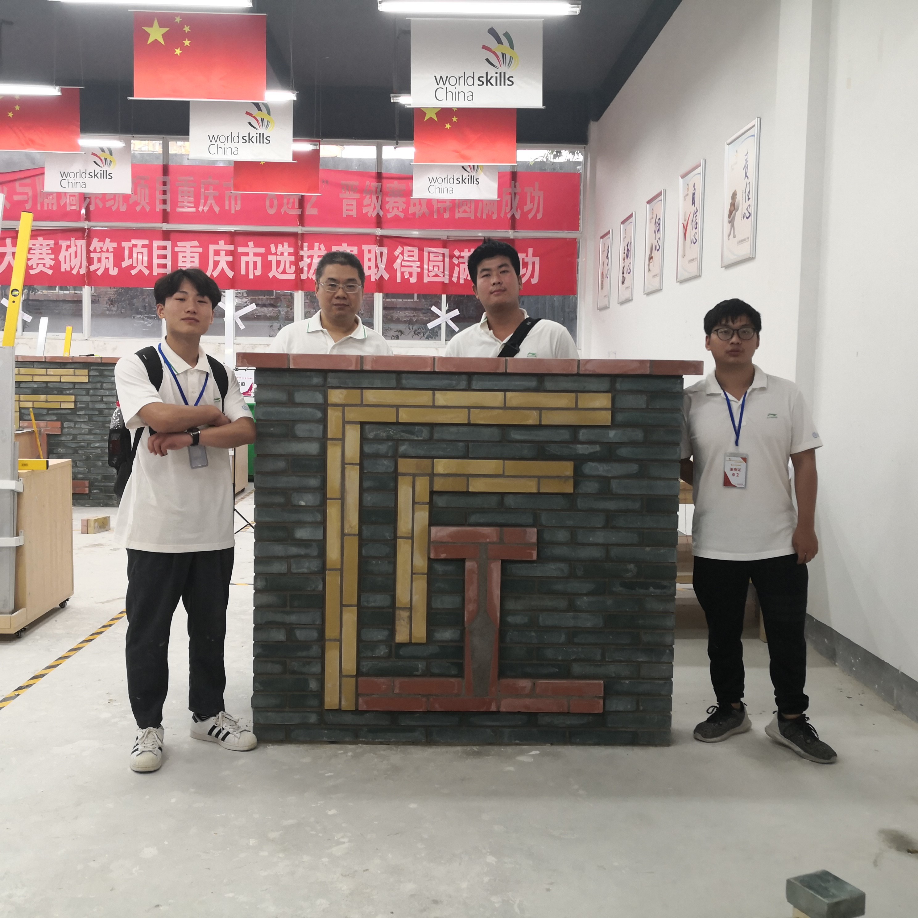 2020年5月26日-31日,由重庆市人力资源和社会保障局主办的第46届世界技能大赛重庆市选拔考核在重庆建筑技师学院举行。本次比赛共设为3个赛项,分别为抹灰与“隔墙系统项目”、“砌筑项目”、“瓷砖贴面”项目,我院土木工程系邓泽贵、孙焱2位老师首次指导参赛“砌筑项目”。比赛内容为用蒸压水泥砖组砌带图案的墙体,本次图案为彩色并凸出于墙面的“匠”字,体现大国工匠精神,竞赛主要采取技能操作方式进行。