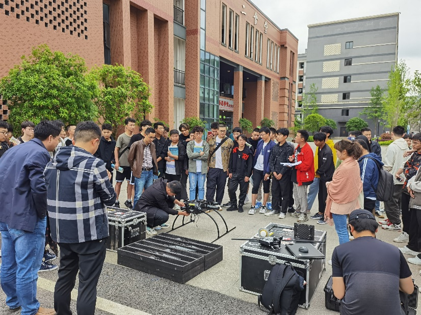 教研活动第二阶段由南方测绘三维激光事业部无人机驾驶员胡翔为师生演示了机载三维激光扫描仪的安装、测区线路规划、以及无人机搭载三维激光扫描仪进行点云数据采集的整个过程。