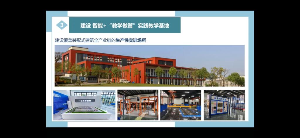 吴国雄校长作了题为《产业链贯通岗课证融通智能化赋能——装配式建筑人才培养创新与实践》的学术报告。针对装配式建筑人才培养中教学内容脱节、实践教学环节匮乏和师资队伍建设滞后等问题,吴校长从构建装配式建筑全产业链职业技能体系、构建“岗课赛证进阶式”模块化课程体系、建设智能+“教学做管”实践教学基地、构建“培践考研”的教师能力发展机制和构建“政产教研用”五维协同人才培养保障机制等五个方面,介绍了我校在提升装配式建筑全产业链各类人才培养方面的创新与实践。报告内容特别是我校在装配式建筑专业人才培养和培训的创新做法,得到了与会单位和专家老师的高度评价和专业认可,相关成果对于装配式建筑专业的教学改革与专业建设具有较好的指导意义。