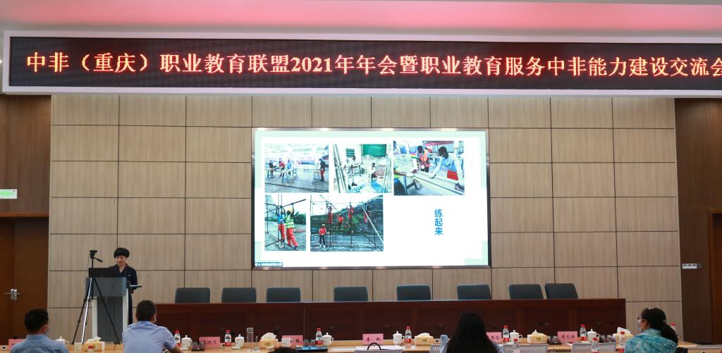 5月13日下午,中非(重庆)职业教育联盟2021年年会暨职业教育服务中非能力建设交流会在我校举行。会议采取线上线下相结合的方式进行,70余家联盟成员单位、高职院校、企业代表共计100余人参会。会上,北京大学南南学院研究办公室主任、北京大学非洲研究中心副秘书长王进杰,中智科技集团副总经理赵新星,法国格勒高等商学院教授、中国及瑞士GEM DBA项目学术总监闫杰,重庆对外建设集团有限公司国际部部长郑小康,南非中国文化和国际教育交流中心(CCIEEC)主任陆志雷,我校智能建造学院院长张银会分别作了报告。