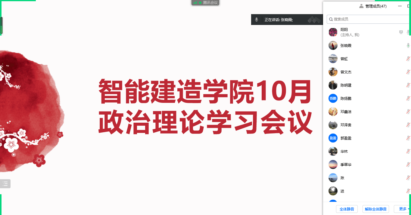 10月14日13:00,智能建造学院组织全体教师线上召开10月政治理论学习会议。