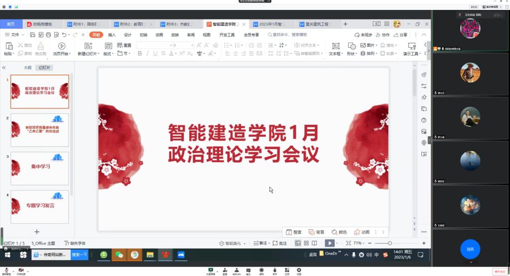 1月6日下午,智能建造学院在腾讯会议召开教职工政治理论学习。会上集中组织学习了国家主席习近平发表二〇二三年新年贺词、习近平对爱国卫生运动作出的重要指示、习近平在中央农村工作会议上的重要讲话等精神,开展了《中共中央纪委印发关于做好2023年元旦春节期间正风肃纪工作的通知》《市纪委监委公开曝光4起违反中央八项规定精神典型问题》《合川区储备粮有限公司、开州两名干部被处理的通报》《中央纪委国家监委网站首批通报6起典型案例》党风廉政学习教育。