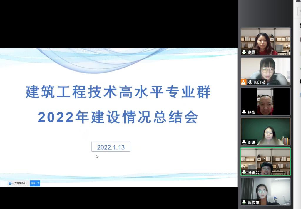 为确保高水平专业群建设任务高质量完成,建筑工程技术专业群于1月13日晚上在腾讯会议上召开2022年建设工作总结会。会议由建造学院张银会院长主持,建管学院院长杨旗、设计学院院长彭珂、设计学院副院长高露及建筑工程技术高水平专业群建设工作相关管理人员参加了本次会议。