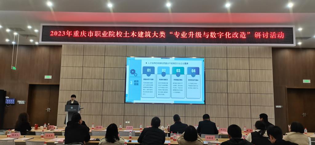 3月5日,“中国银行杯”2023年重庆市职业院校土木建筑大类“专业升级与数字化改造”主题研讨活动成功在我校举行。近30所高校及企业的专家、教师共300余人线上线下参会。