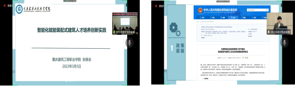 我院院长张银会教授应邀作题为《智能化赋能装配式建筑人才培养创新实践》的学术报告。随着建筑行业转型升级,我国以装配式建筑为代表的新型专业技术技能人才匮乏,而当前高校人才培养存在课程体系与行业标准脱节、实践环境匮乏、师资建设滞后等问题,严重制约了建筑业高质量发展。我院从2012年始,与重庆中科建设(集团)有限公司合作订单培养“中科精英班”,开展装配式建筑人才培养改革试点。经过10余年不断地研究探索,我们在装配式建筑人才培养上做出了成绩,取得了一些成果。张院长在研讨会上从装配式建筑职业技能谱系图的开发、“岗课赛证融合式”模块化课程体系的构建、智能+“教学做管”实践教学基地的建设、建研技赛“四转化”教学资源的开发等方面分享了我校在装配式建筑人才培养经验做法,得到了与会单位和专家老师的高度评价和认可。