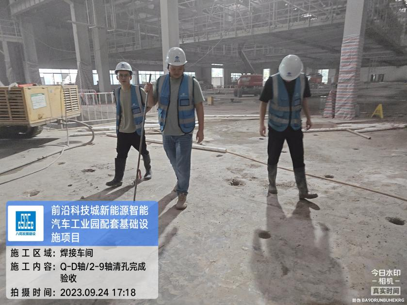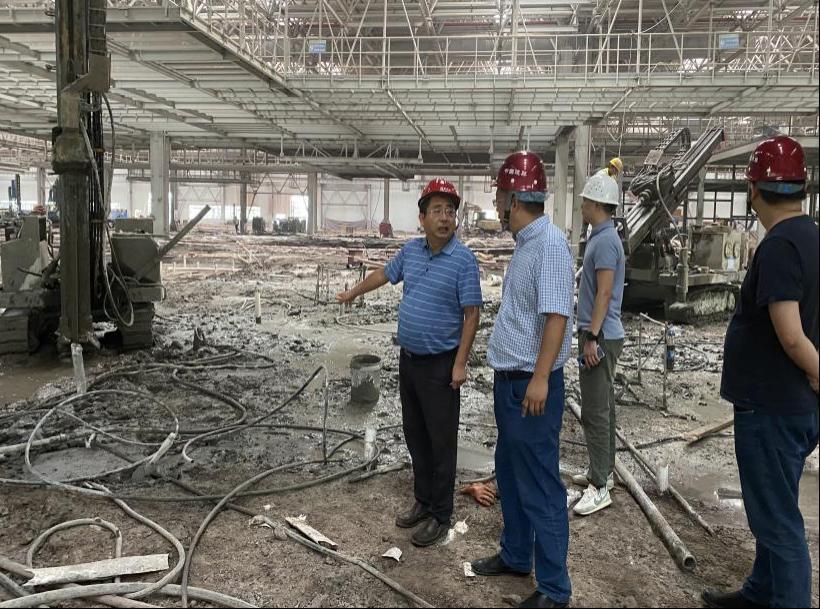 前沿科技城新能源汽车工业园配套基础设施项目地块为新近高回填场地,由于地坪沉降影响生产线设备安装需要进行注浆处理。受重庆前沿汽车工业有限公司的委托,2023年8月9日起学校委托智能建造学院建设工程安全技术研究中心,由孔凡林等组成技术咨询专家组,开展技术服务工作。专家咨询组主要负责设计方案技术参数,质量控制指标审核,参与设计方案审查,参与施工方案审查,检查施工过程质量不合格行为,参与中间验收和施工质量验收等咨询工作等。在学校和二级学院两级领导及科发处领导同志们的关心和指导下,项目咨询工作推进顺利,为业主解决实际技术问题,得到了认可与肯定。