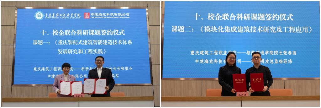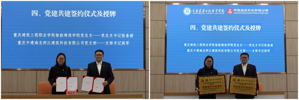 在与会人员的共同见证下,双方完成了党建共建、校企合作、“中建海龙班”及校企联合科研项目签约与授牌。
