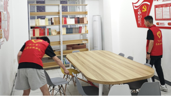 活动中,志愿者们分工协作,有的手持清洁工具,对党团活动室和学生自习室的宣传栏、桌椅、书架等区域进行细致擦拭,整理书籍与活动物资;有的清理地面纸屑并分类回收垃圾,更有同学贴心补充了公共纸巾、粉笔等用品。经过两个小时的劳动,原本杂乱的自习室焕然一新,桌椅摆放整齐、窗明几净,墙壁上还新增了“离座请带走垃圾”的暖心提示标语。