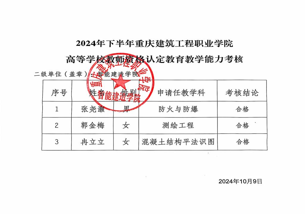 2024年上半年教师资格认定教育教学能力考核合格人员名单公示如下