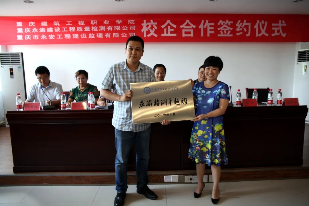 2016年6月,我院与重庆永渝检验检测技术有限公司签订校企合作订单培养协议,从2016级起,每年为重庆永渝检验检测技术有限公司订单培养一个班的学生。校企双方共同商定教学计划和教学标准、共建师资队伍,采取校企合作、工学结合的方式开展教学。