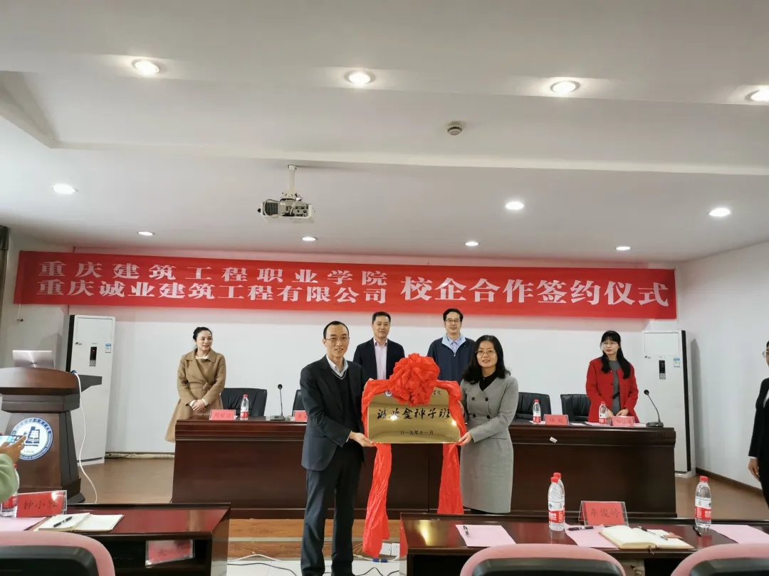 2019年11月,我院与重庆诚业建筑工程有限公司成为校企合作签约单位,每年在建筑工程技术专业订单培养一个班的学生,由土木工程系组织实施。作为重庆建筑行业知名企业,重庆诚业建筑工程有限公司长期关注与关心我院专业发展和人才培养,与该公司的联合培养计划是我院校企深层战略合作的一大标志。“诚业金种子班”同学,能珍惜和把握住每一次的学习机会,在企业专家的指导下、在学校专业老师们的教导下,不断积累沉淀知识,熟练掌握各项实践技能,力争成为行业和社会最需要的高素质技术型人才。“诚业金种子班”的学生受到优质专业的培养,力争成为行业需要的尖端人才,为企业和学院增光添彩。