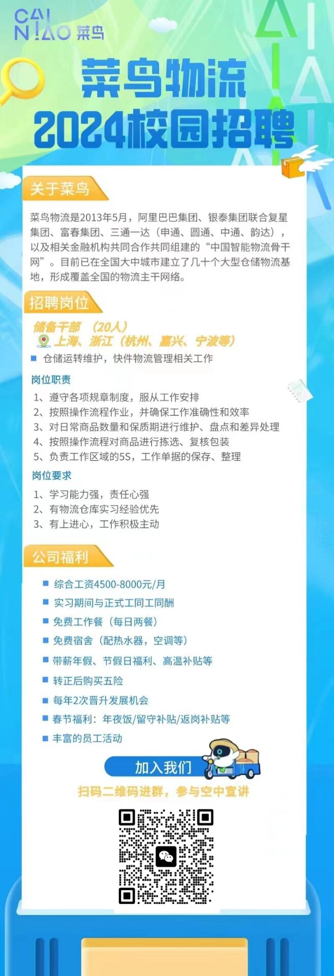 菜鸟物流招聘,扫码二维码进群,参与空中宣讲.