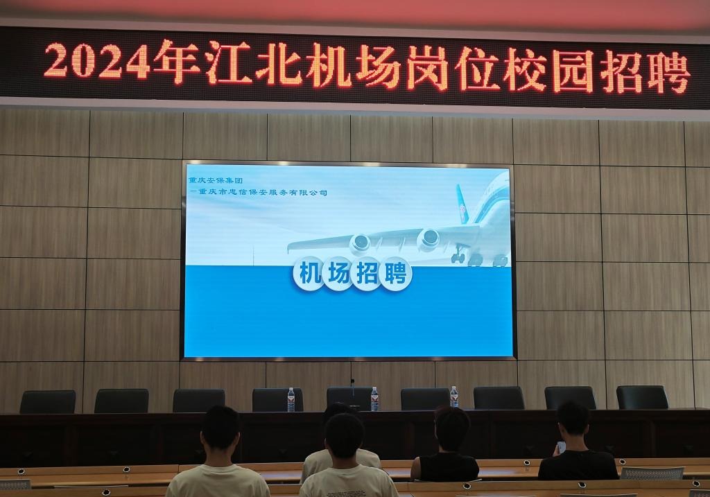 5月31日,智能建造学院在建业楼201多功能厅组织了2024年机场防爆安检岗位校园招聘会。重庆惠麒教育科技有限公司总经理吴美丽、重庆市忠信保安服务有限公司万朝红经理等一行到校宣讲,并与2025届毕业生面对面开展选聘活动。