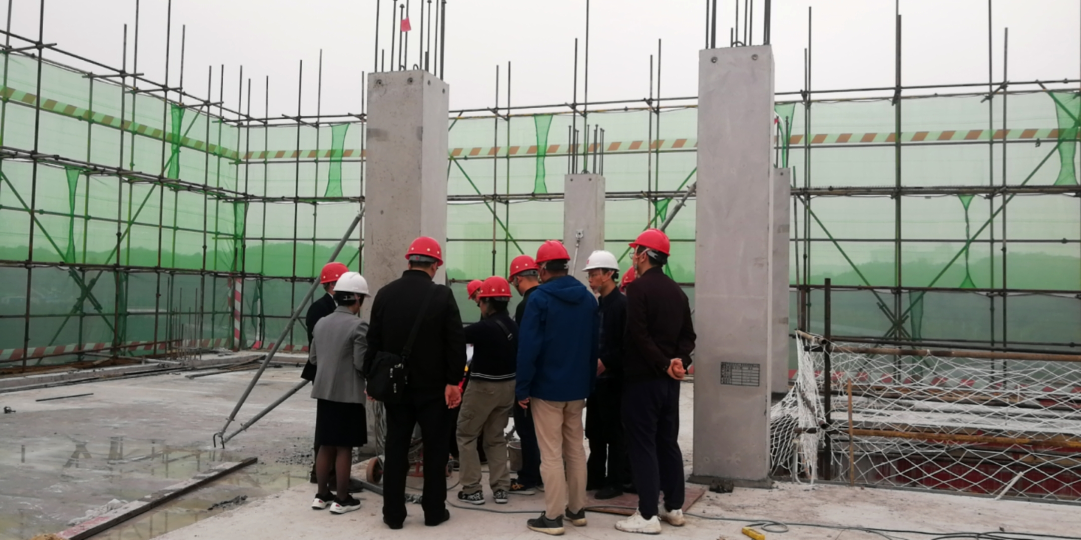 第二阶段专业教师在深圳中海建筑有限公司现场负责人孙经理的带领下,参观学院三期项目“建筑产业现代化实训基地”,就装配式建筑涉及的构件生产与制作、构件吊装、构件灌浆相关施工工艺及主体结构设计和建筑材料力学性能等进行充分的交流与探讨。