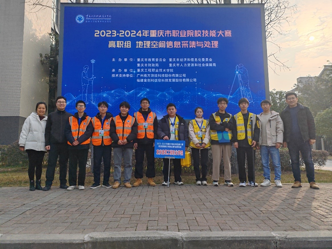 202416日,2023-2024年重庆市职业院校技能大赛高职组“地理空间信息采集与处理”赛项圆满结束,我校智能建造学院22级测绘1班学生沈豪、邬周、何欣荣、吴鲜,22级测量1班学生李杭、何泽雨、王小川、郭钟组建的两个参赛参加比赛,经过激烈角逐,两队分别荣获二等奖。