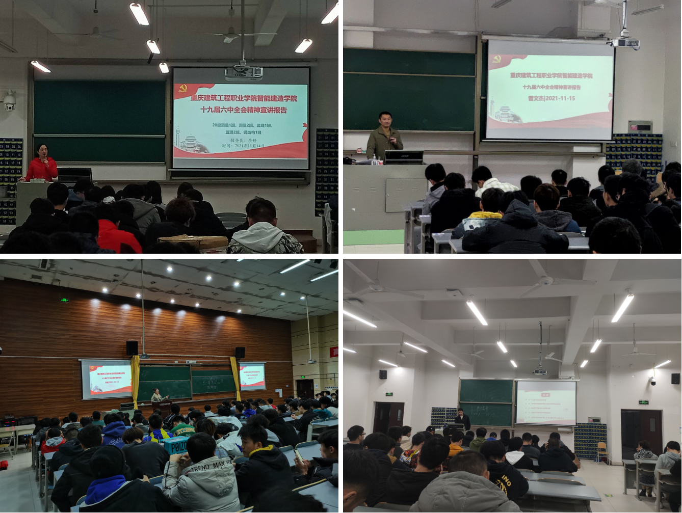 2021年11月14日-22日,智能建造学院通过教职工政治理论学习、“三会一课”、主题班会等形式,采用线上线下相结合的方式,组织全院师生学习了党的十九届六中全会公报,共21场,覆盖师生2000余人。