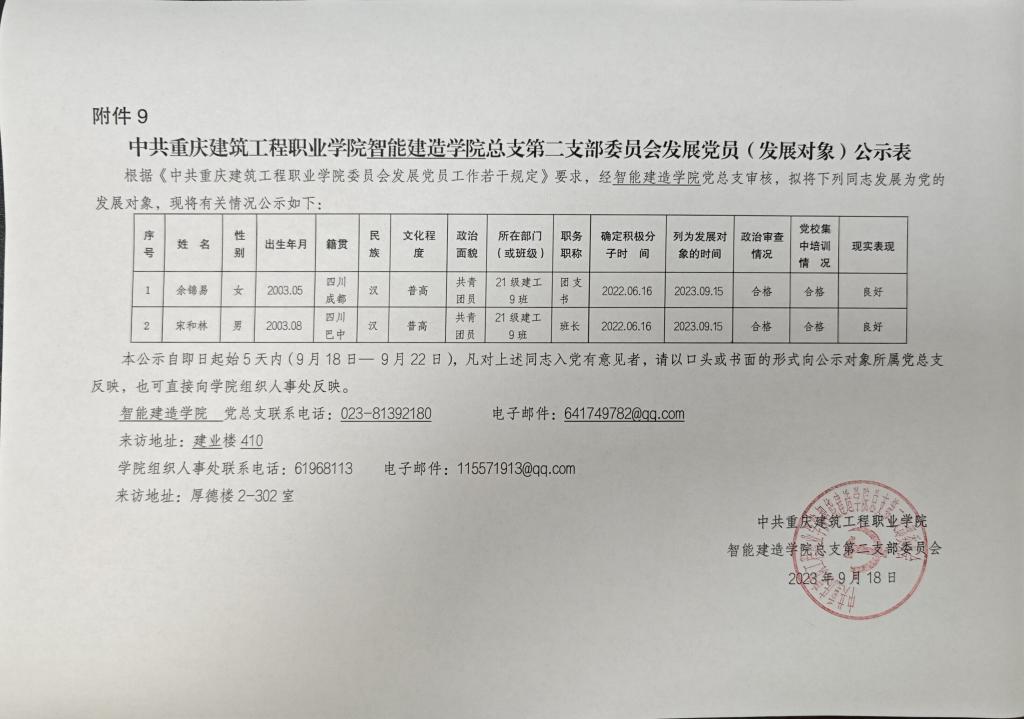 关于确定余锦易、宋和林2名同志为党的发展对象的公示