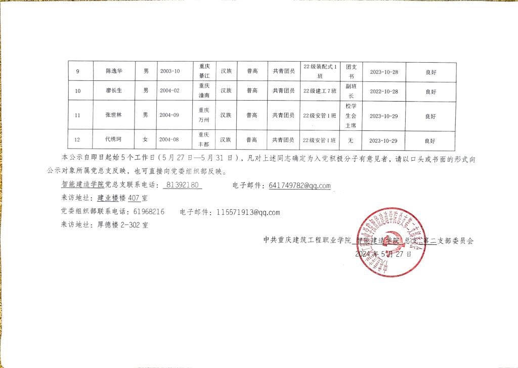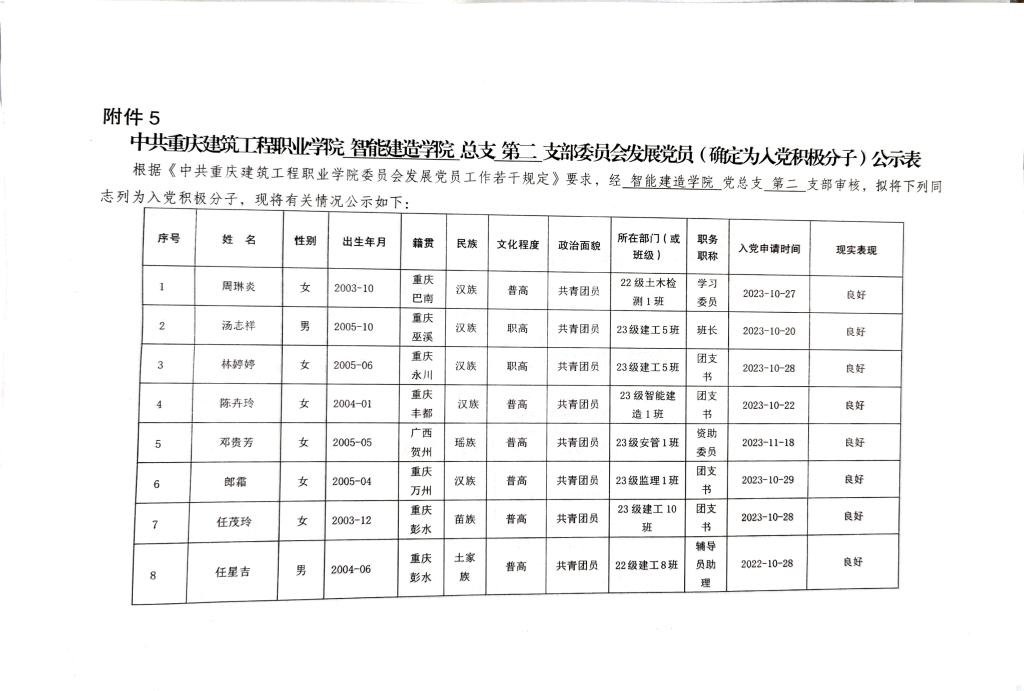根据《中共球盟会qmh网页版登录委员会发展党员工作若干规定》要求,经智能建造学院党总支第二支部审核,拟将下列同志列为入党积极分子,现将有关情况公示如下: