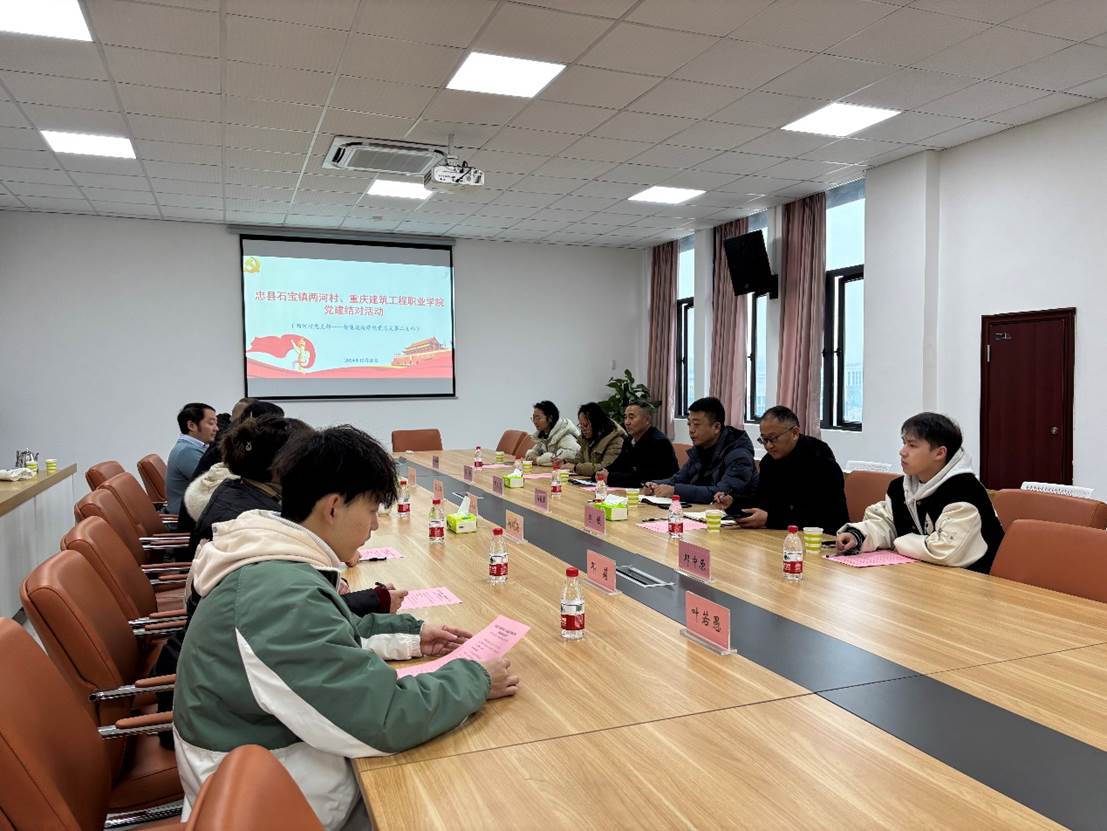 12月20日,学院党总支第二支部与忠县石宝镇两河村党支部开展了“支部联建强党性,红色传承铸党魂”支部结对联建活动。两河村党支部书记邓卫东、驻村第一书记马春洪、忠县融媒体中心培训部主任李铁等一行六人到校开展座谈、考察、研学等系列活动。学院党总支副书记崔接友、副院长熊启东、支部书记刘晓蓉等陪同考察座谈。