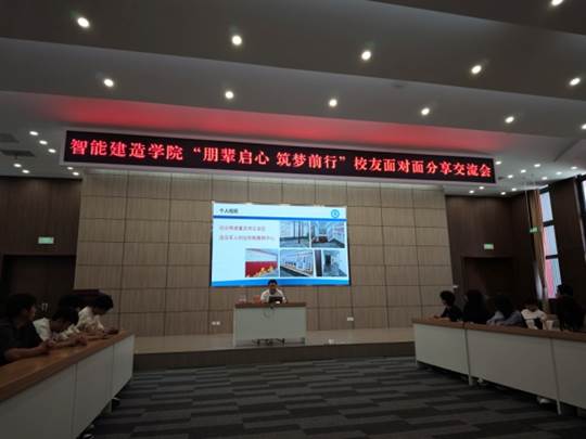 为深入推进“三全育人”综合改革试点建设工作,智能建造学院于4月26日在建业楼201学术报告厅开展了“朋辈启心 筑梦前行”校友面对面分享交流会。学院特邀智能建造学院(原土木工程系)2014级建筑工程技术专业(中科精英班)学生吴浩锋回校为50余名学弟学妹分享交流。