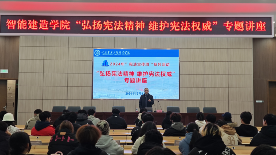 12月4日是我国第十一个国家宪法日,智能建造学院特邀重庆公孝律师事务所管委会主任李和平在建业楼201学术报告厅为我院100余名师生作了“弘扬宪法精神 维护宪法权威”专题讲座。