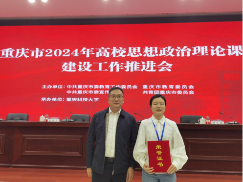 10月30-31日,重庆市2024年高校思政课教师教学技能竞赛决赛在重庆科技大学落下帷幕,并召开全市高校思政课建设推进会。我校马克思主义学院教师李佳获得一等奖的好成绩,党委副书记郭光亮、马克思主义学院院长宋星参加了全市高校思政课建设推进会。