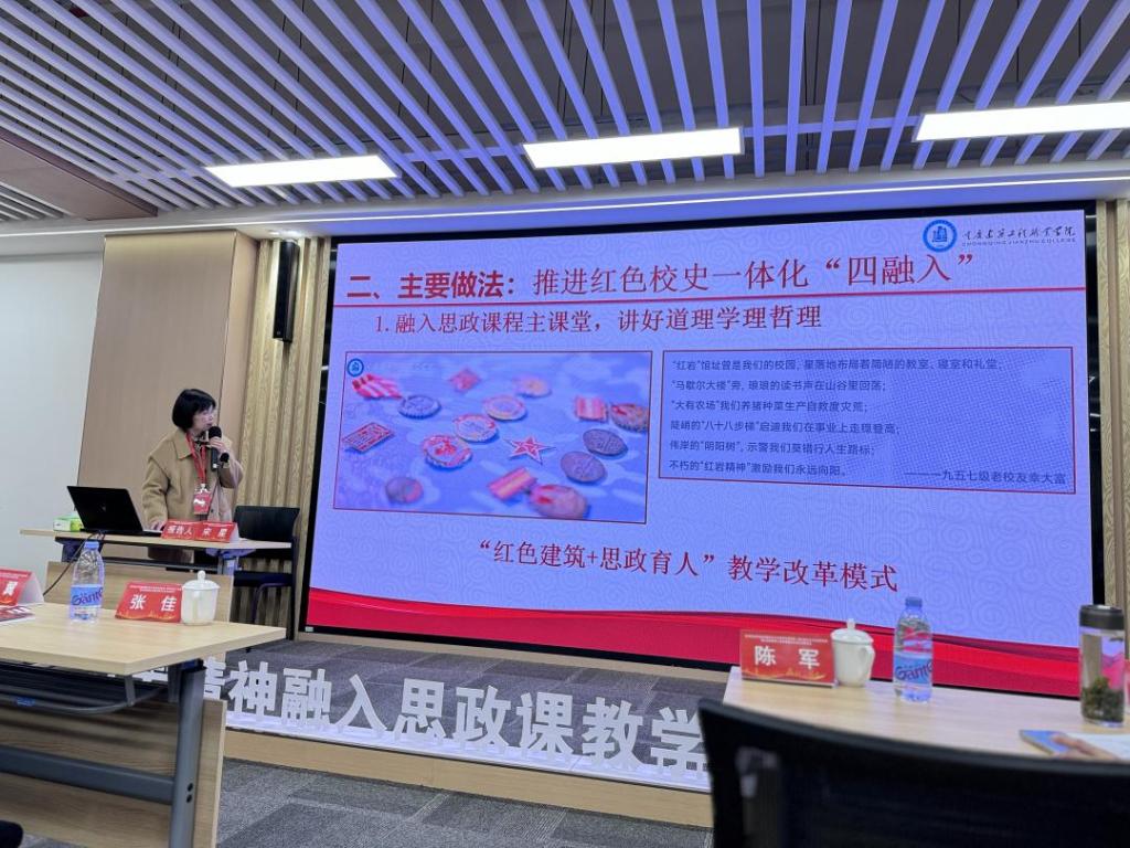 本次研讨会为期两天,市教委宣教处李林齐处长到会指导,重庆师范大学马克思主义学院教授兰桂萍、重庆红岩干部学院副教授王超、新疆农业职业技术大学马克思主义学院党总支书记、院长王学利作主旨报告,来自川渝两地的8所兄弟院校代表围绕主题做经验交流分享。我院院长宋星以《用好用活红色校史打造“三转化四融入”红岩思政育人品牌》为题作经验交流分享,报告了我校围绕重庆市“1458N”红岩思政总要求,打造具有学校辨识度的“红岩思政”的具体做法。