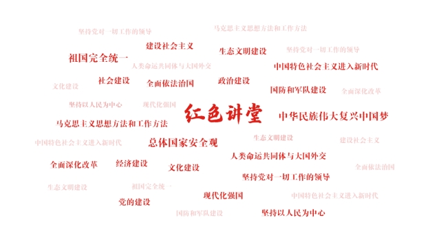 依托权威专业的师资力量,“红色讲堂”现已建成涵盖中华民族伟大复兴的中国梦、经济建设、政治建设、文化建设、社会建设、生态文明建设、总体国家安全观、国防和军队建设、祖国完全统一、人类命运共同体与大国外交、党的建设等十八大专辑的完整思政知识体系。