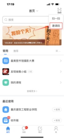 (2)在软件首页右上角,点击“邀请码”,输入“jzzytsg”即可进入球盟会qmh网页版登录图书馆页面