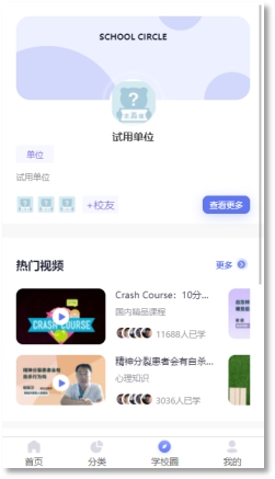 (三)学校圈:点击底部菜单学校圈进入学校圈页面,可查看本校交流情况。
