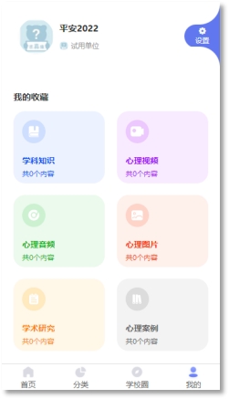 平台主要包含学科知识、心理视频、心理音频、心理图片、心理案例、心理专家等版块,新增了校外访问功能和用户中心功能,升级了高级检索功能,并对移动端页面进行了重构。